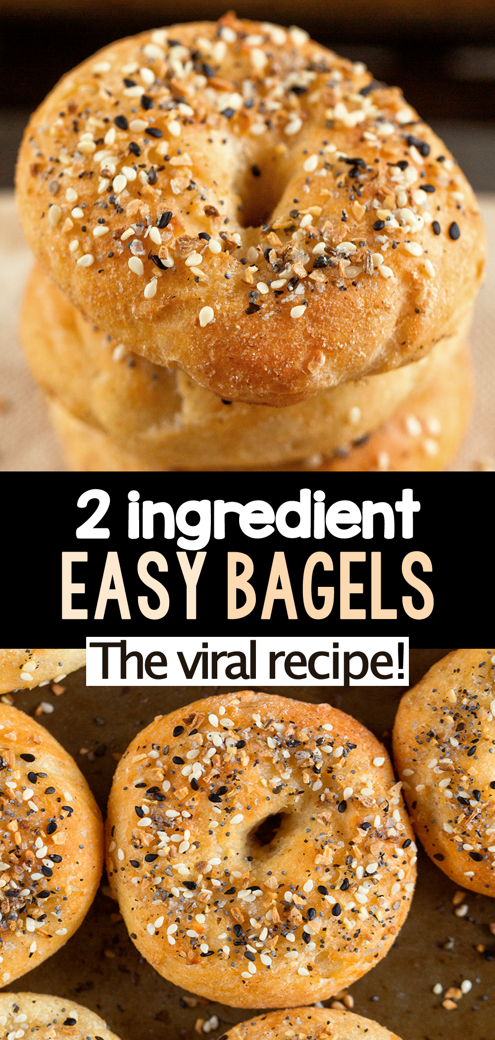 These easy 2 ingredient bagels are baked in the oven, with no yeast required for the super simple breakfast recipe!