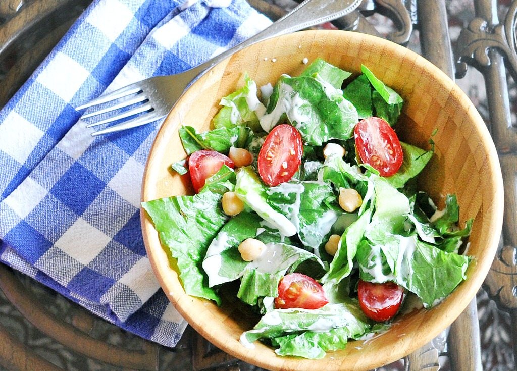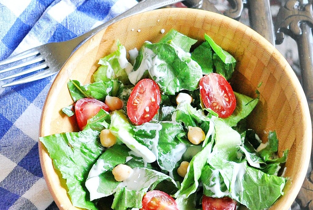 Above, a salad tossed with Crazy-Good Ranch Dressing.