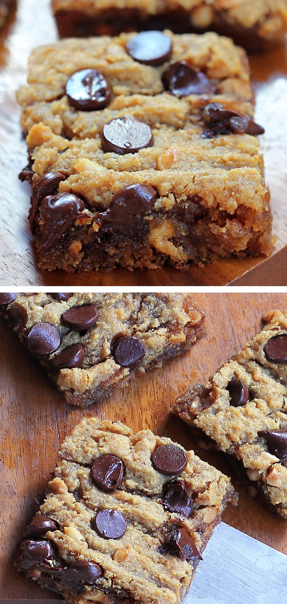 These chocolate chip peanut butter bars are one of the top most popular recipes on my blog – and for very good reason!