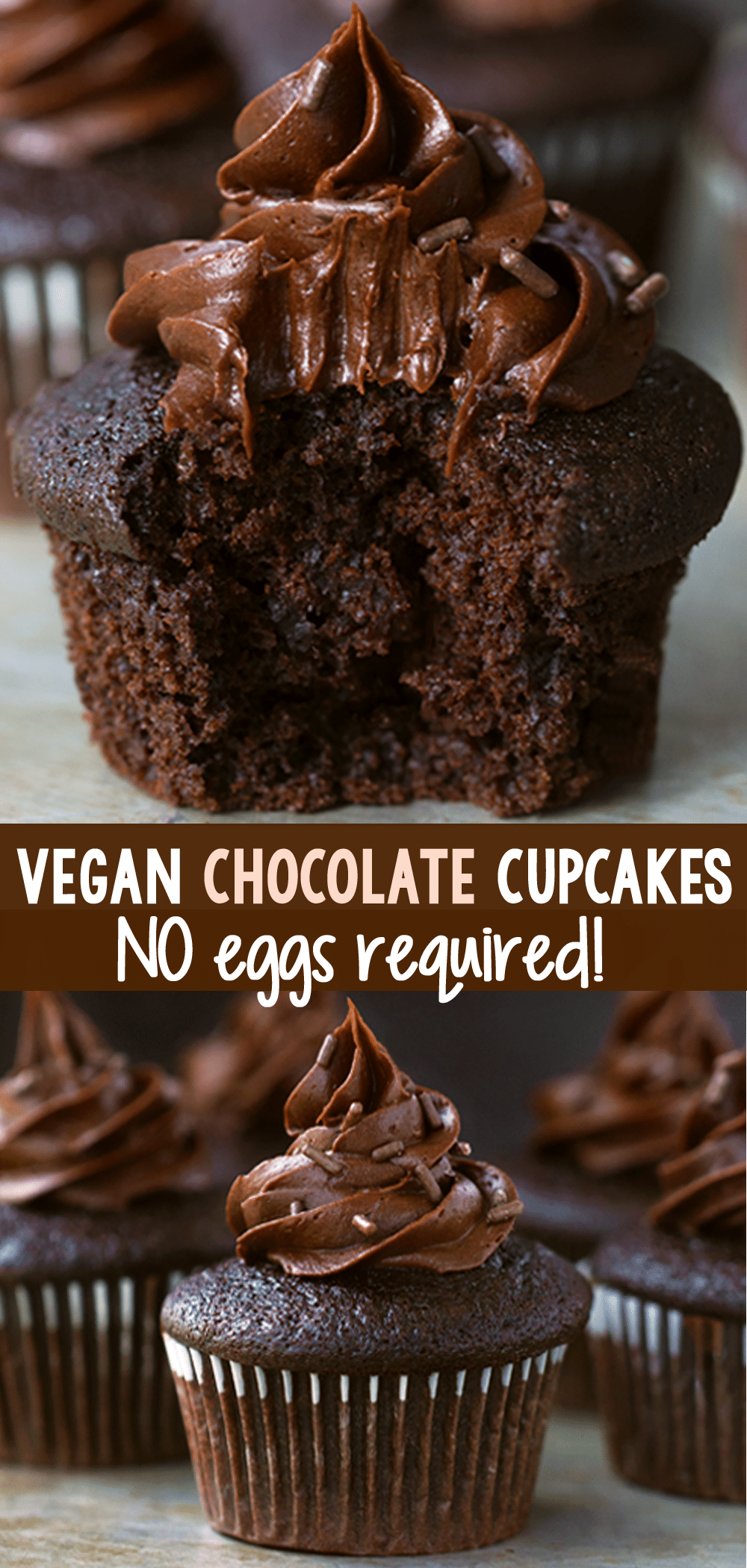 These vegan chocolate cupcakes are deep, dark, rich, moist, and fudgy, with no dairy and no eggs required for the recipe!