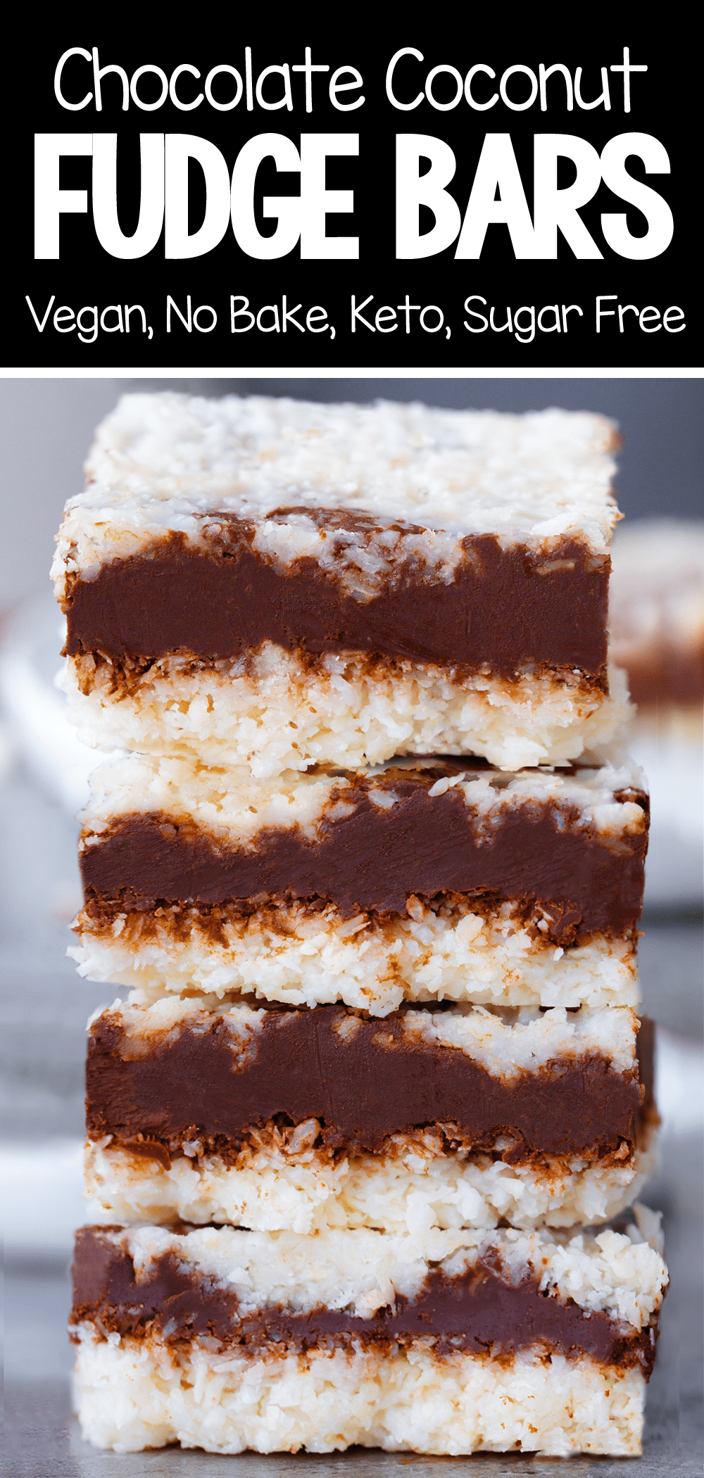 To make the bars, press 2/3 of the coconut mixture into a parchment-lined pan, spread the chocolate fudge over top, then sprinkle on the remaining coconut and refrigerate until firm.