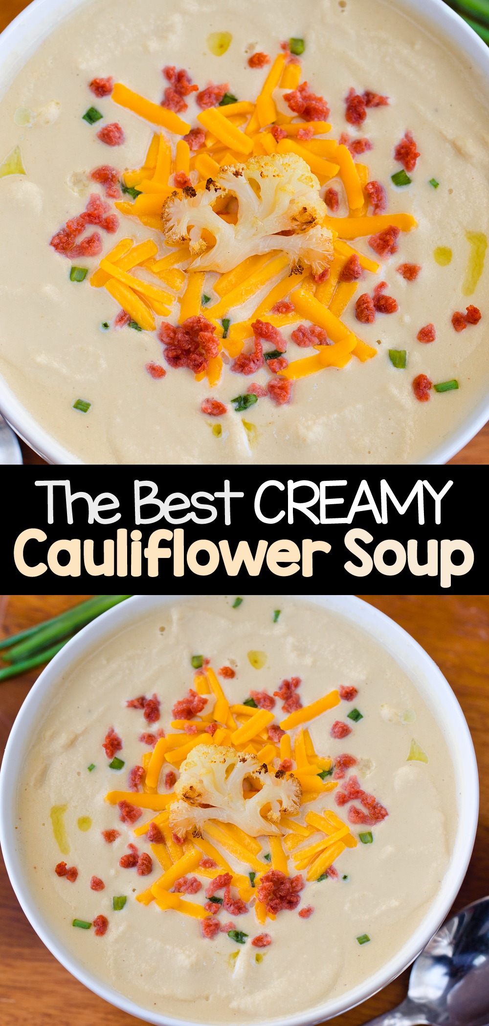 You will want to make this easy cauliflower soup recipe over and over again for dinner, because it is so unbelievably creamy and delicious!