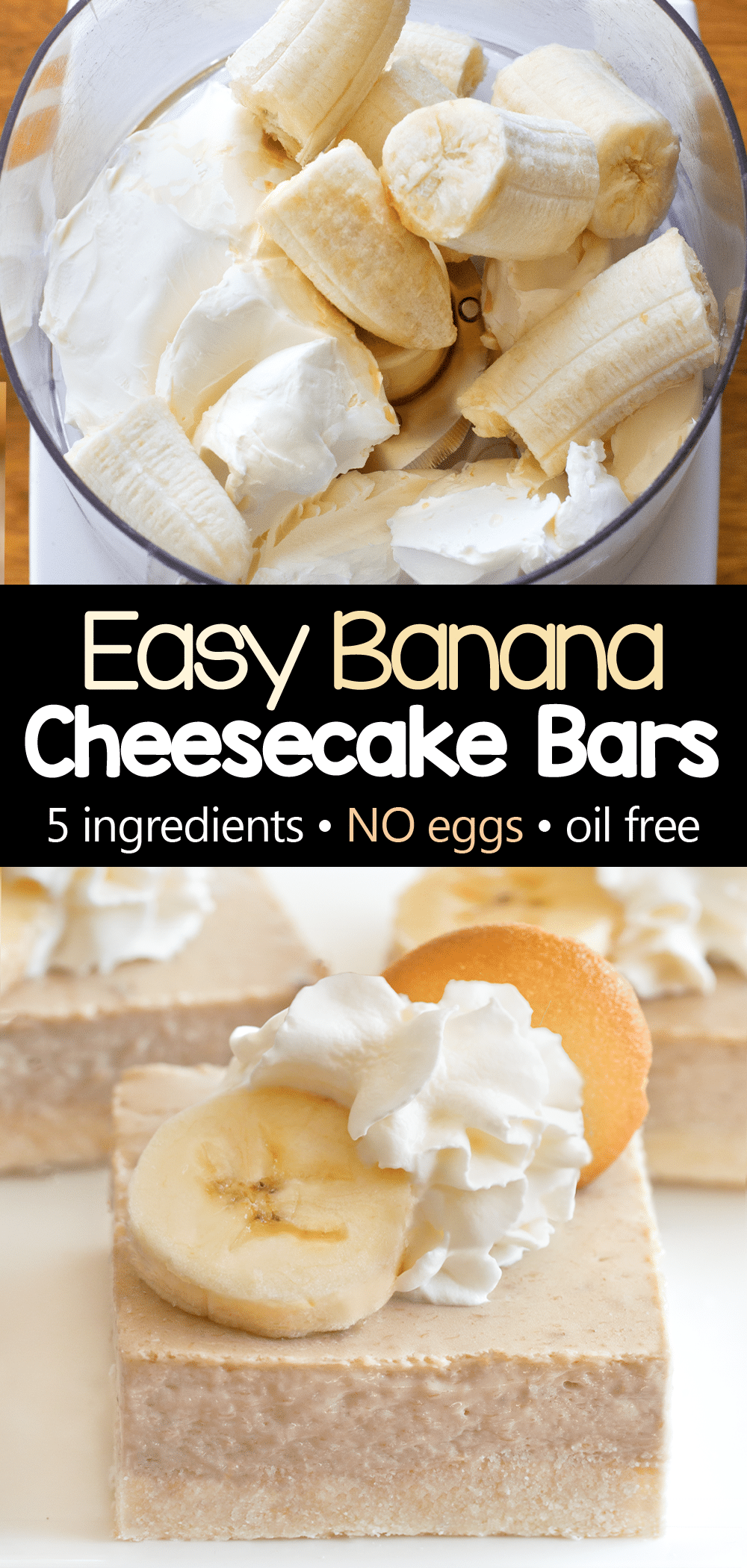 The easy banana recipe was adapted from both my classic Vegan Cheesecake and this Keto Cheesecake, and from these fall favorite Pumpkin Cheesecake Bars.