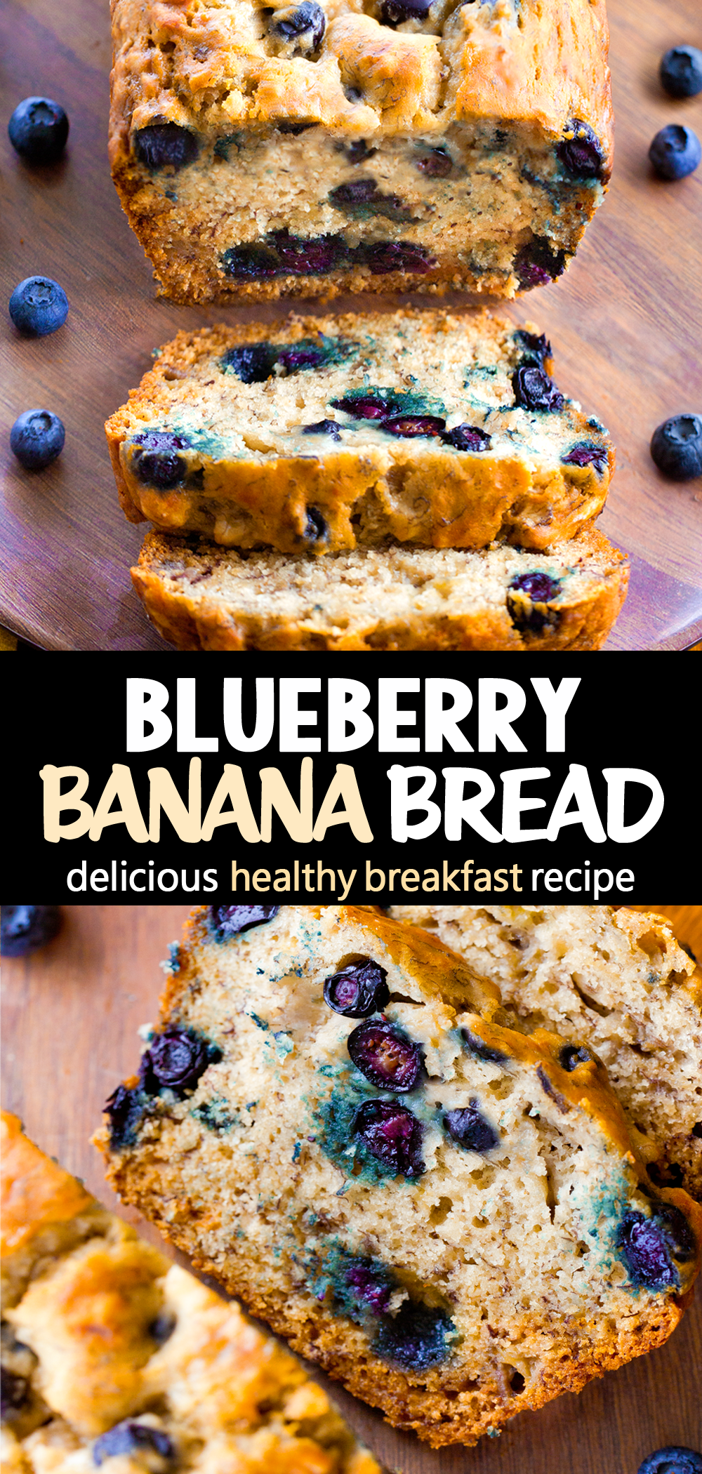 This soft, moist, delicious blueberry banana bread recipe is bursting with sweet and juicy blueberries in each bite!