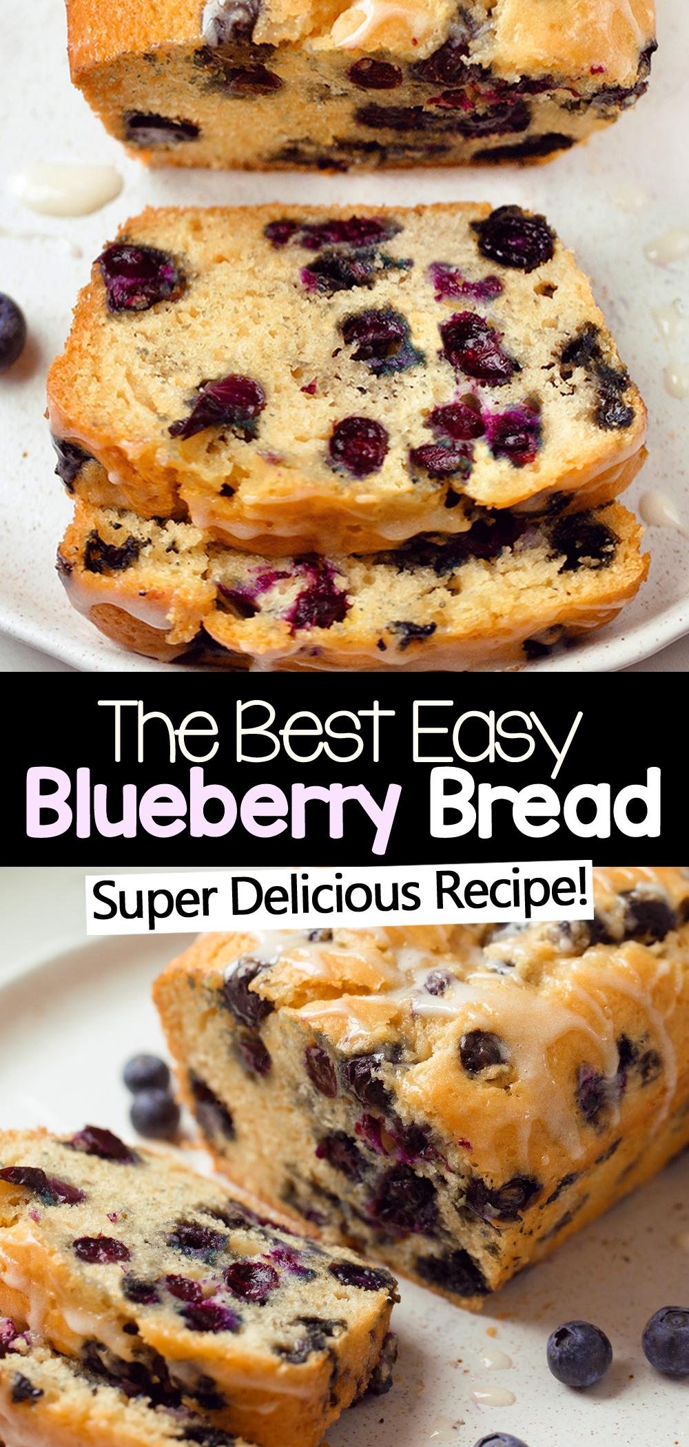 This classic homemade blueberry bread recipe tastes like eating a giant fluffy blueberry muffin or a slice of blueberry cake!