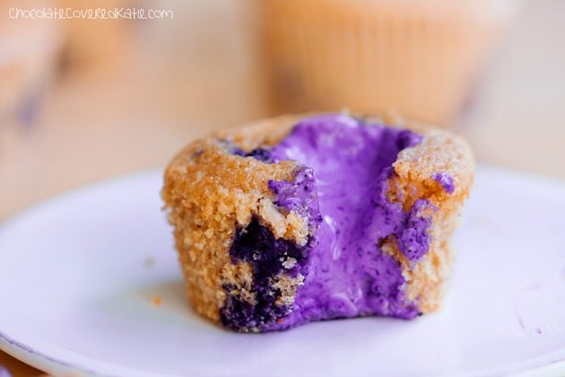 For the blueberry cream cheese muffins: Preheat the oven to 350 F and grease a muffin tin or line with 7 liners. In a large bowl, stir together first 6 ingredients very well. In a separate mixing bowl, whisk remaining muffin ingredients except blueberries. Pour wet into dry and stir until just evenly mixed. Then add blueberries and very gently stir only until evenly mixed. (Do not over-stir, which could break the berries and turn the muffins pink!) Pour into liners and bake on the middle rack for 19 minutes or until domed with a toothpick inserted into the center of a muffin coming out clean. Let sit 10 minutes before removing from the tins. Liners pull off much more easily the next day. For the blueberry cheesecake filling: blend all ingredients in a blender or with a hand blender until smooth. Mixture will thicken as it sits and can easily be made the day before and stored in the fridge. Cut out a hole in each baked blueberry cream cheese muffin with a spoon, and fill. There will be leftover blueberry cheesecake filling… you can use the rest to top other things, like pancakes! (Or you can make a half recipe of filling if you’d prefer.)