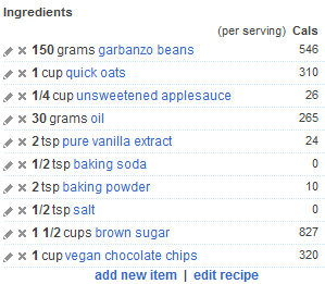Note to those who plug my recipes (or any recipes) into free online calculators: Be careful when using a free online calculator, as they’re often inaccurate. If you plug this recipe into caloriecount, for example, it gives you numbers based on a recipe made with dry beans, even if you specify cooked. (I fixed the error so that the label above is accurate; I just plugged in the amount of dry beans that would be equal in calories to 2 cans of cooked beans. For curious minds, I’ve attached a screen shot below. The numbers listed in the screen shot are for the entire recipe.)