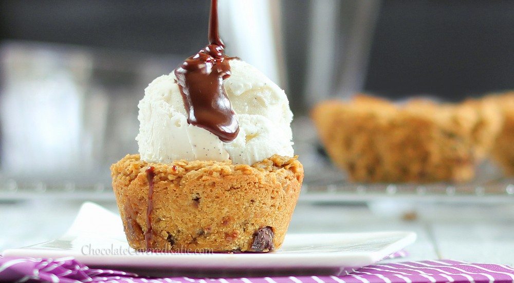 Like any self-respecting cookie lover, I fell in love with the concept of chocolate chip cookie cups the second I first saw it on Pinterest. The idea was to take any cookie dough and bake it on the bottoms of muffin tins, like so: