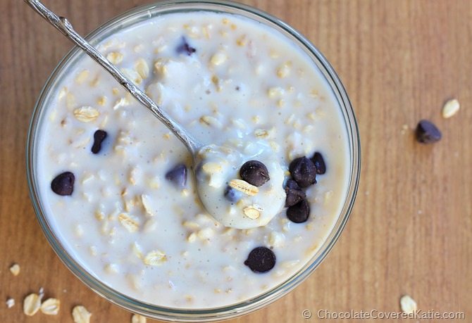 LOVE overnight oats…love this recipe the best, because it’s chocolate chip cookie flavored 😉