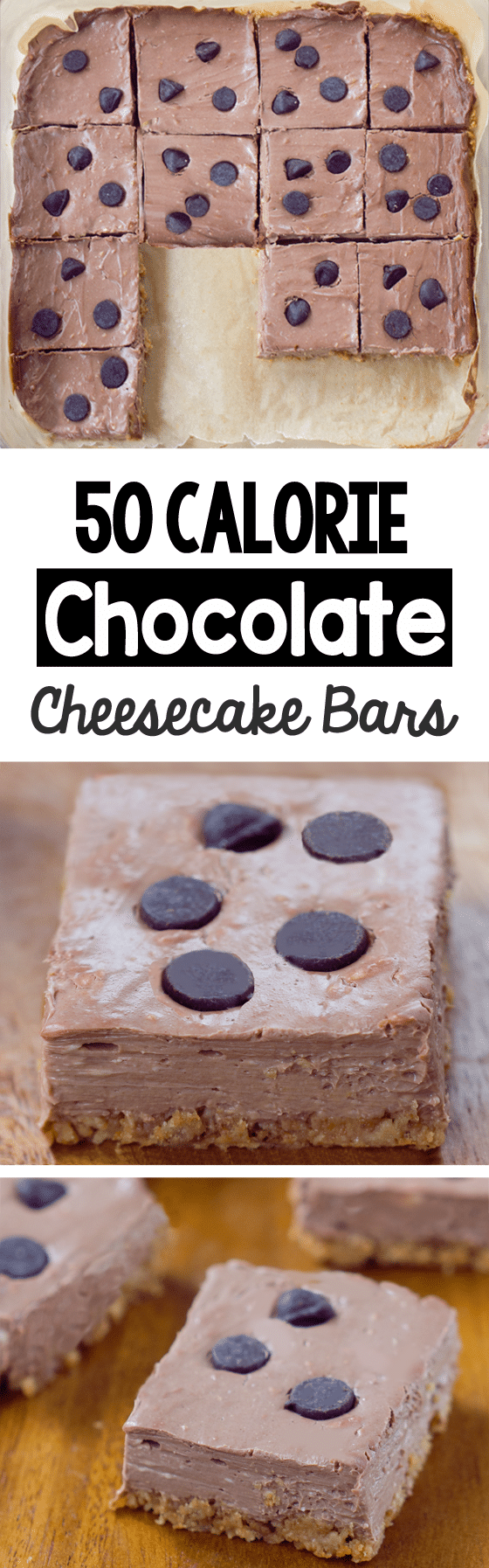 These chocolate cheesecake bars are a great healthy dessert for any cheesecake lover.