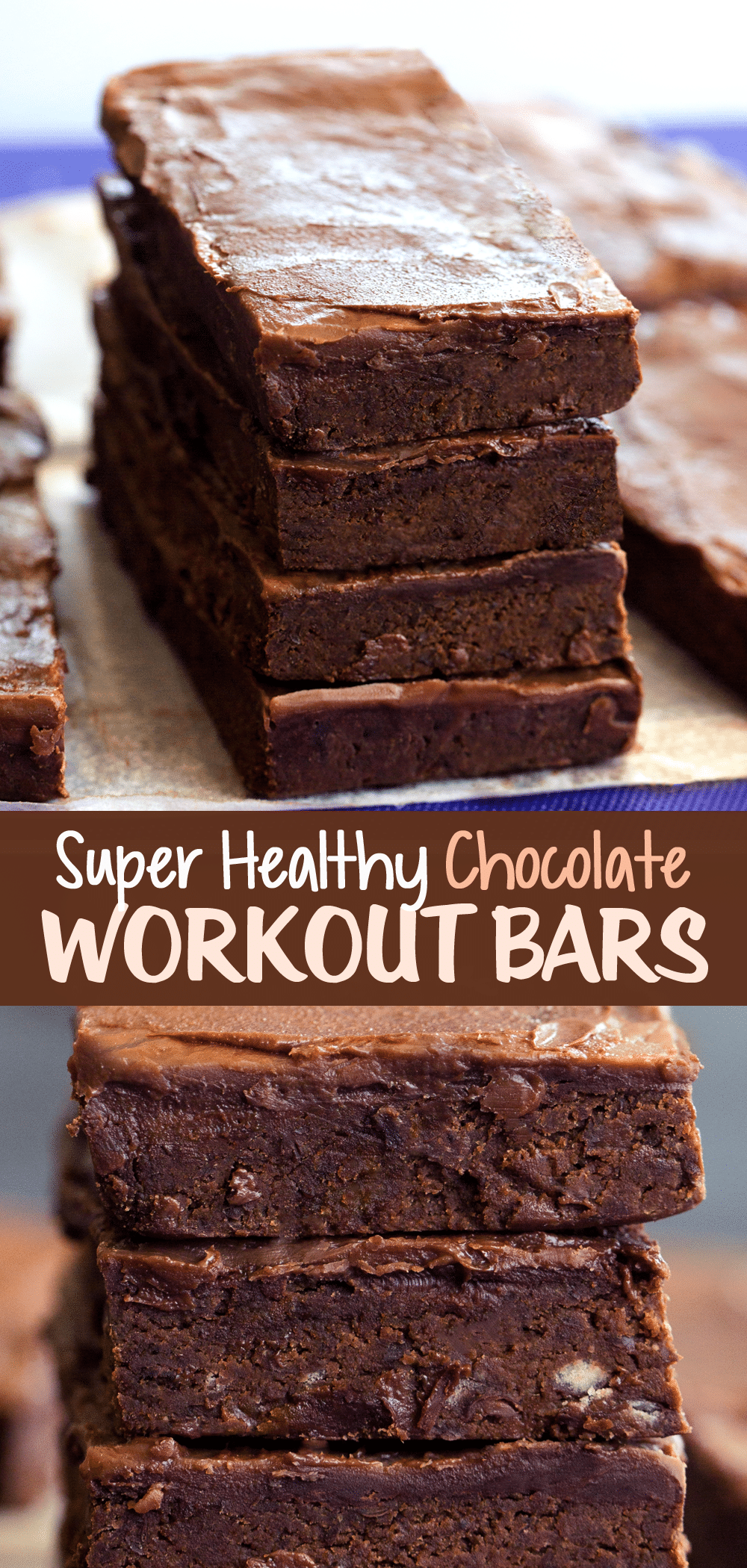 These healthy chocolate workout bars are packed with protein and wholesome ingredients, yet they taste like you’re eating a gooey chocolate fudge brownie!