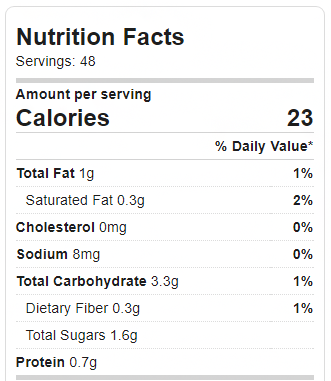 Nutrition facts per tbsp of the chickpea cookie dough dip are based on a recipe made with natural peanut butter, chocolate chips, flax, and regular sugar. If you plug the recipe (or any recipe) into free online calculators, just be aware the numbers you receive can often be inaccurate. For instance, if you plug this particular recipe into caloriecount, it gives you numbers based on a recipe made with dry beans even if you specify canned or cooked beans. (I fixed the error so the information above is accurate.)