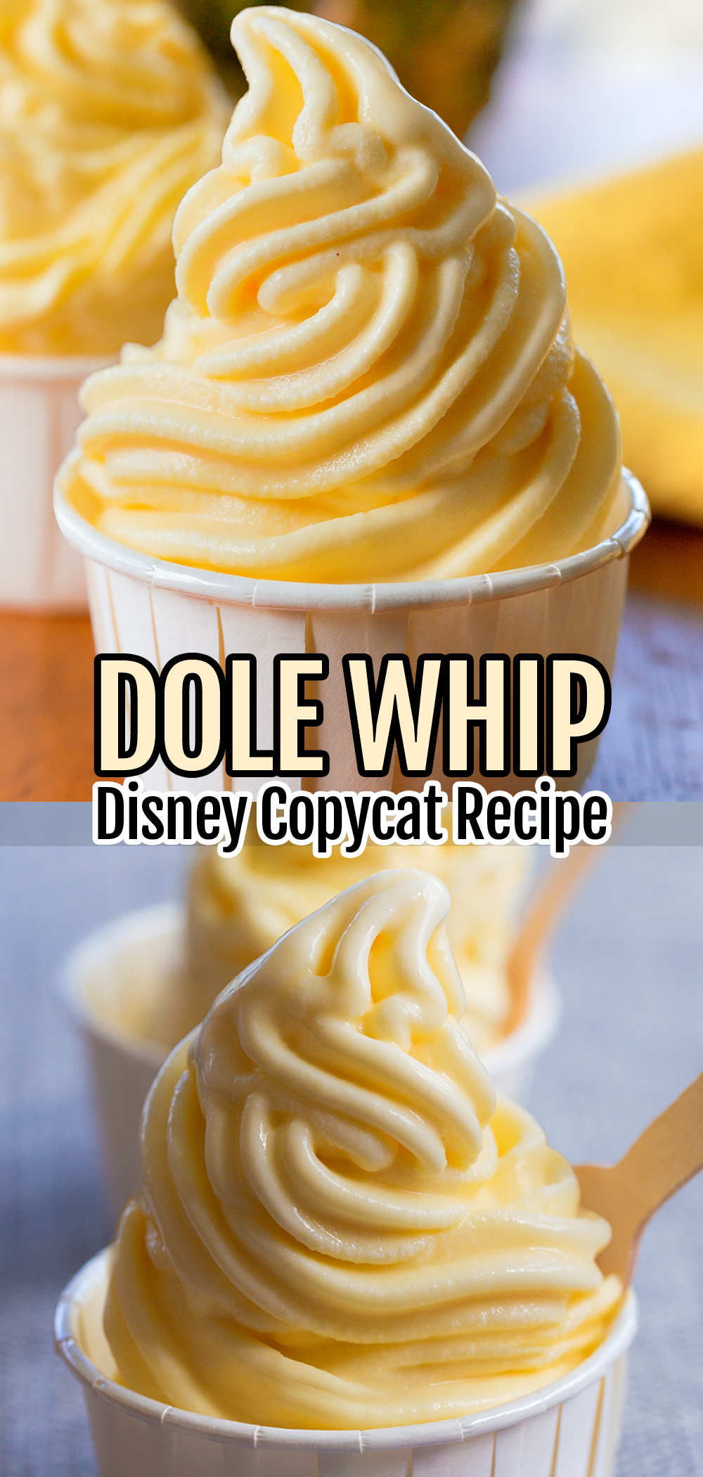 The original Dole Whip recipe is a swirled pineapple soft serve dessert that tastes like a cross between pineapple frozen yogurt and creamy vanilla ice cream.