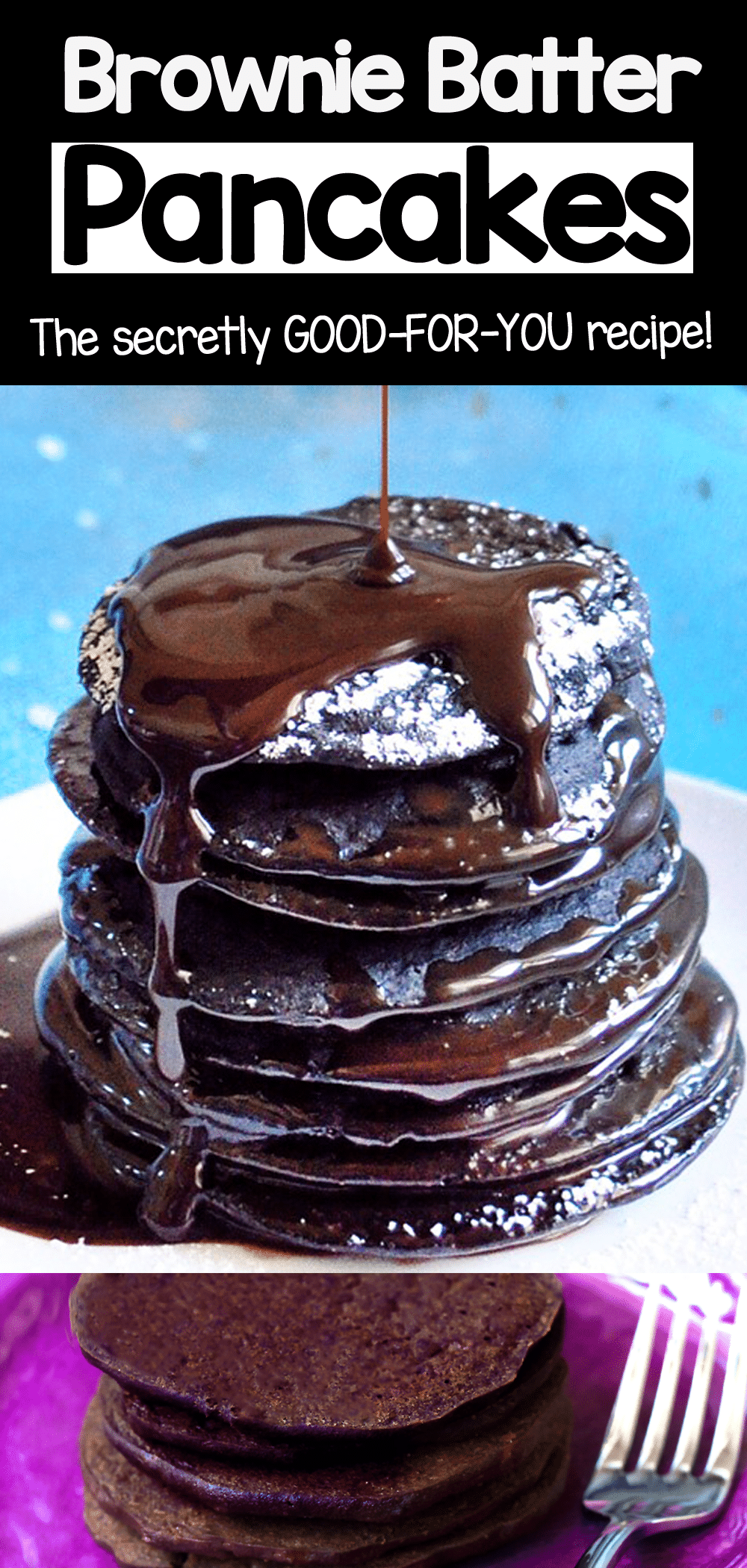 These secretly vegan and healthy brownie batter pancakes taste like eating dessert for breakfast!