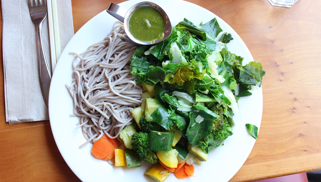 Soba and veggies from Angelica Kitchen. See that basil pesto sauce on the top? I’m not exactly sure what they put in it to make it taste so good, but I don’t think it’s legal!