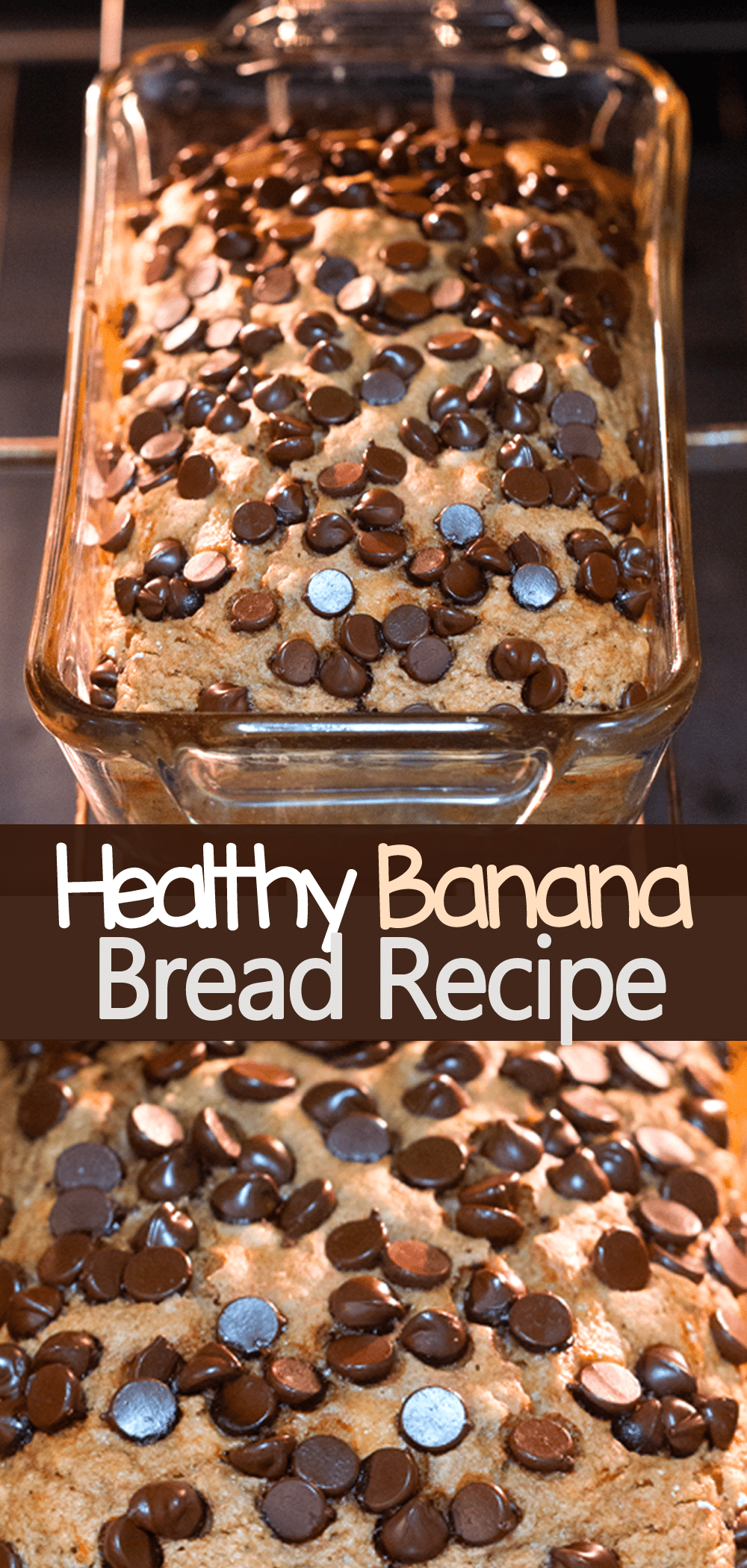 - *Also be sure to try this recipe for Banana Muffins!Flour options I have tried successfully include white, spelt, or oat flour.To make healthy banana bread, first preheat the oven to 350 F. Grease a 9×5 loaf pan, or line the pan with parchment paper. Combine dry ingredients in a bowl. Whisk liquid ingredients in a separate bowl. Pour wet into dry, and stir to form a batter. Smooth into the prepared pan. If desired, press some chocolate chips into the top. Bake on the center rack 40 minutes, then do not open the oven door but turn off the heat and let sit in the closed oven 10 additional minutes. If your bread is still undercooked at this time, cover the top with foil. Turn the oven back on and continue baking, checking every 5 minutes, until a toothpick inserted into the center comes out clean. Let cool completely. Cover and refrigerate overnight. Taste and texture are much better the second day if you can wait! Leftovers can be sliced and frozen for up to a month. If you try the recipe, be sure to rate it below.View Nutrition Facts