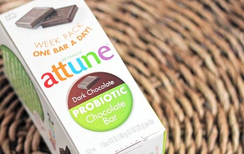 But these Attune chocolate bars are so good, I’d still eat them even if they weren’t fortified with calcium and probiotics. Each 68%-cacao dark chocolate bar has: