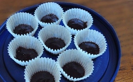 I started by melting a frozen PMS Chocolate Bar into mini liners.