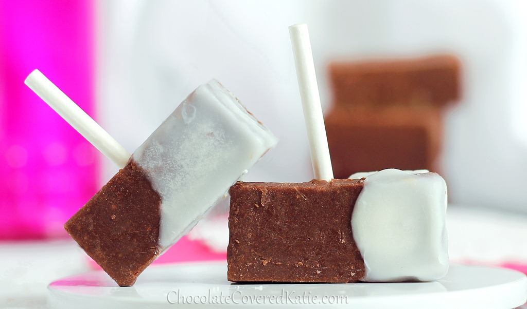 Gently warm coconut butter until stir-able (if it’s not already soft). Combine it with the agave or maple syrup, then add cocoa and salt, and stir until you achieve a smooth chocolate paste. Pour into 2 to 4 candy molds, or pour into the bottom of a shallow plastic dish. Freeze until solid. If not using the candy molds, you can cut into 2 to 4 pieces after freezing. If desired, dip half of each piece into coconut butter to achieve the white-and-black look in the photos. (Note: I improved the recipe after taking the photos, so the chocolates will look darker than what is shown.) When ready to use, simply drop one piece into 2/3 cup very hot milk of choice and stir until completely dissolved. Add extra sweetener as desired. These are best stored in the fridge or freezer, since coconut butter melts when warm.