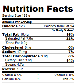 Above information is for 1/4 of the entire recipe (including 2/3 cup almond milk), or each 24-gram chocolate bar plus the milk. Information was calculated via caloriecount, using gram measurements, and will vary depending on your milk of choice.