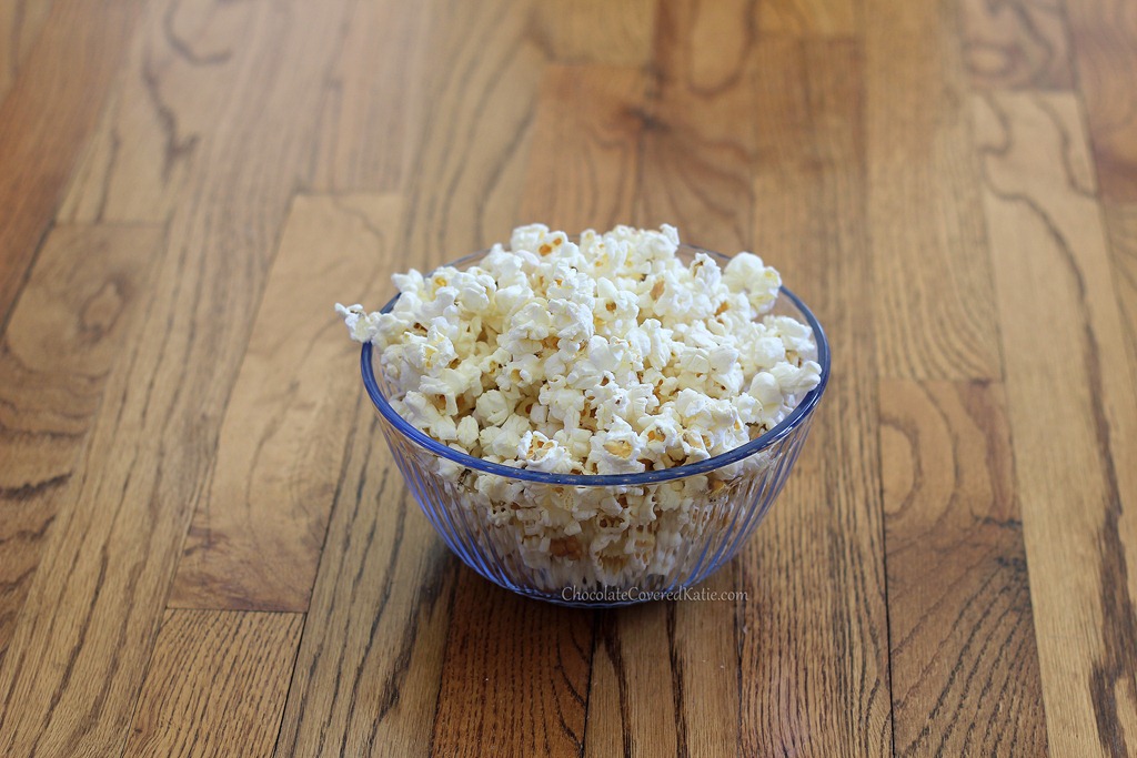 Note: If you want flavored popcorn, toss the kernels in 1 tsp oil, scant 1/8 tsp salt, and desired seasonings—such as cinnamon or garlic powder—before popping.