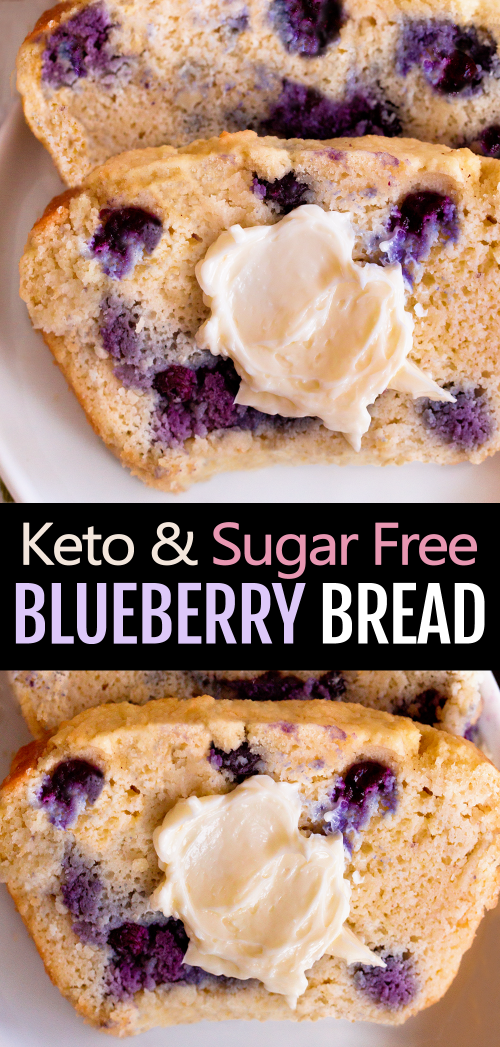 The loaf was adapted from my Healthy Blueberry Muffins and Keto Blueberry Muffins, as well as this Keto Lemon Bread.