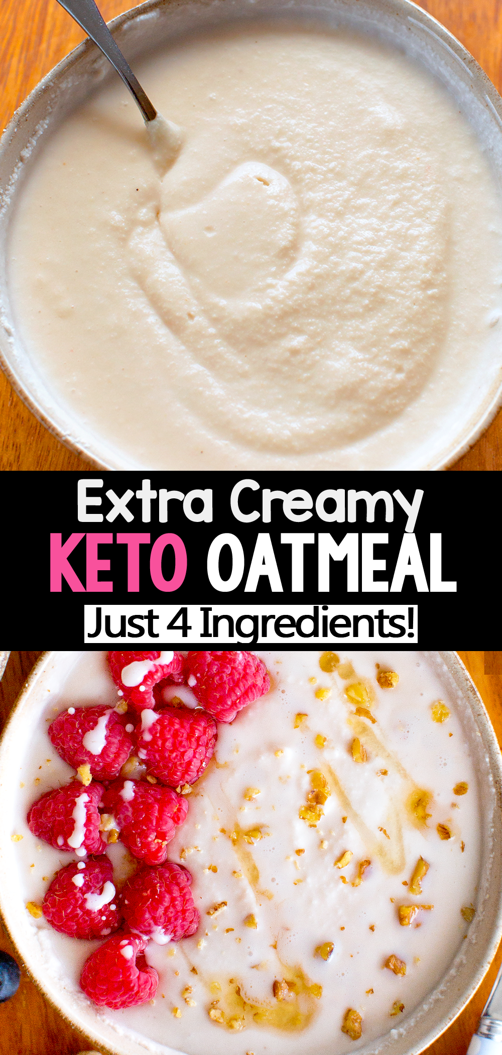 This healthy keto oatmeal recipe is a thick, creamy, and delicious low carb comfort food breakfast in a bowl!