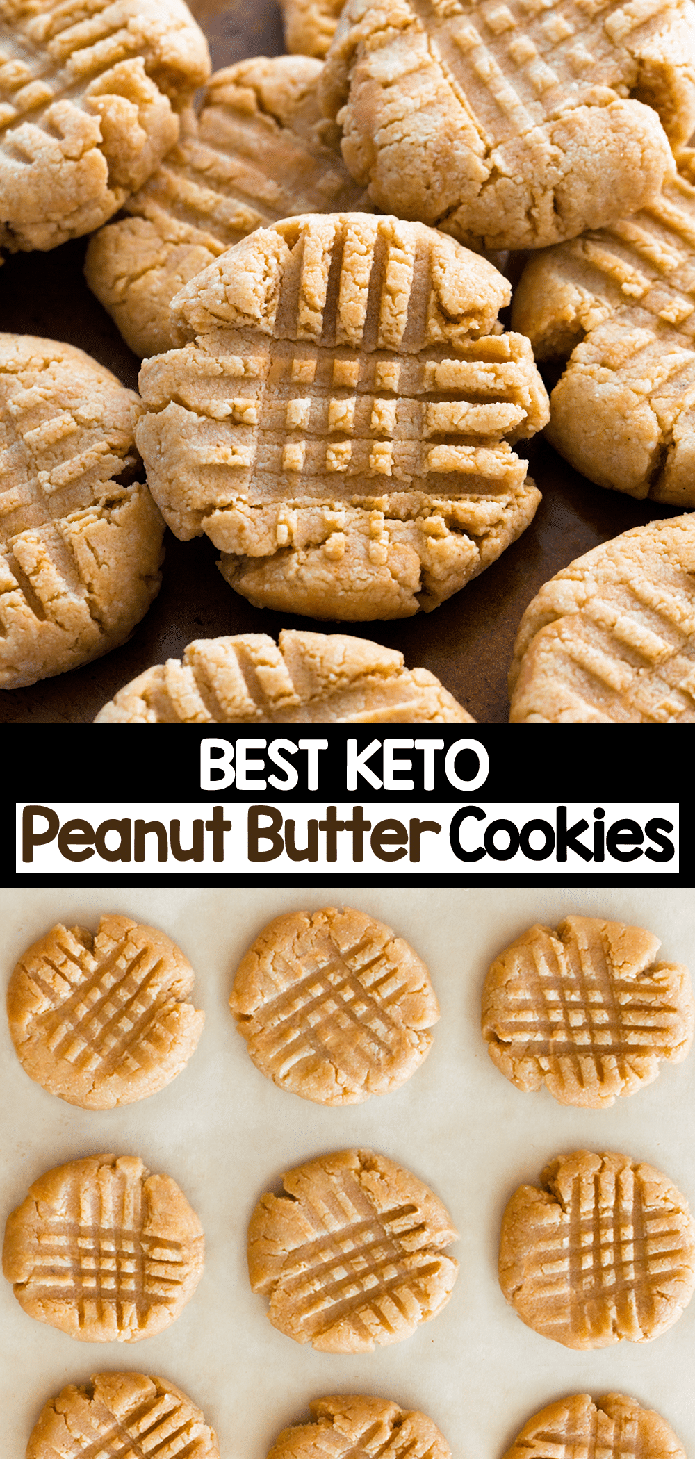 If you’re looking to make 3 ingredient keto peanut butter cookies instead of the recipe below, simply stir together 1 cup peanut butter, 1/2 cup granulated erythritol or sugar, and 1 egg or chia egg. (A flax egg will work but is more crumbly.)