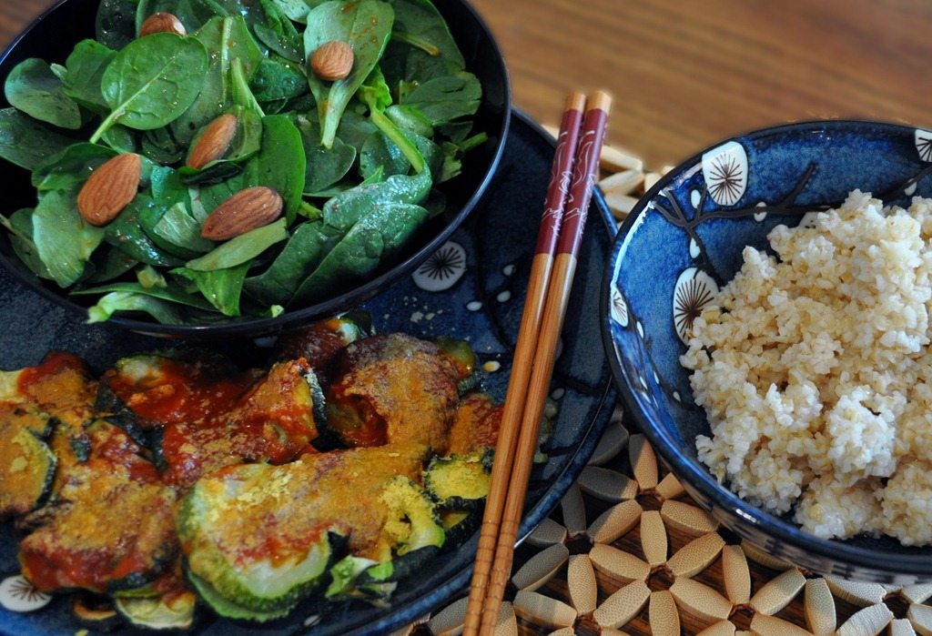 But with a twist: Last time I made the casserole, I decided it was too much of a hassle to cook the veggies, cook the polenta, and then bake them all together. So yesterday I skipped the baking step (and had bulgur pilaf on the side, instead of polenta).