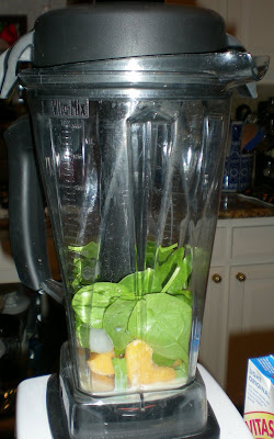 Luckily, since it was a Saturday, I had extra time to make my second breakfast. So I pulled out the Vitamix, threw in some spinach, frozen peach slices, soymilk, and ice cubes, and took care of that spinach craving.