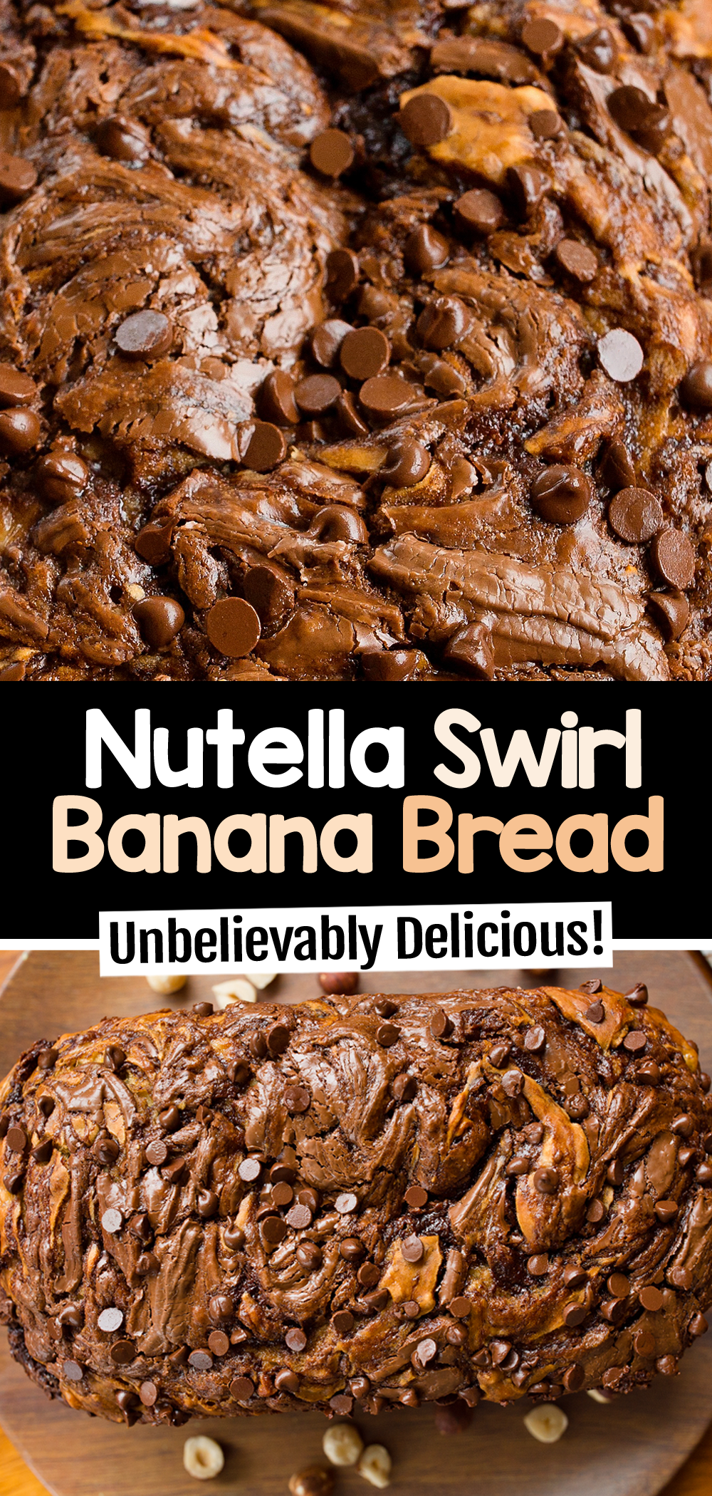 With a rich chocolate hazelnut swirl in each delicious bite, this Nutella banana bread recipe is possibly the best banana bread you will ever taste!