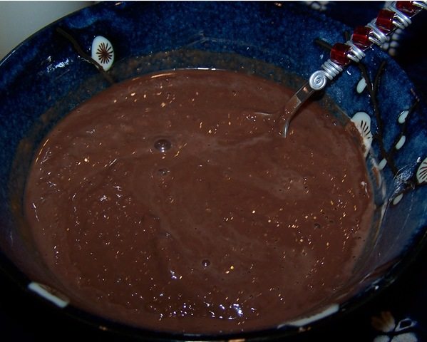 Above, a Manila mango, a glass of almondmilk, and Chocolate Cream Pie Bulgur Pudding
