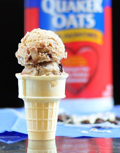 It’s the comfort food of ice cream – Like a warm oatmeal cookie, straight out of the oven, splashed with milk and dusted with cinnamon sweetness. Imagine your favorite cookie churned into sweet, creamy ice cream and scooped high onto a cone. Your tastebuds say “oatmeal cookie,” but your eyes will know better.