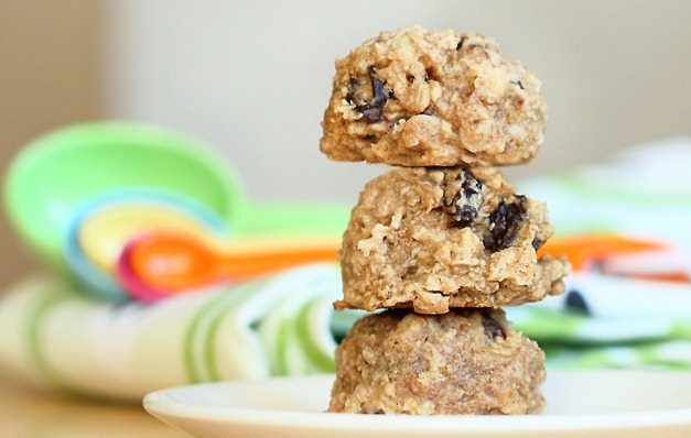 Preheat the oven to 350 degrees. Mash the applesauce or banana with the nut butter, then add all other ingredients and mix until well-combined. Shape into cookies and bake for around 14 minutes. (Alternatively, you can try pulverizing the raisins and oats before combining them with the banana mixture, if you want more sweetness.) This recipe probably yields around 10-12 cookies, but I had to guess… because I ate a considerable amount of the raw dough!