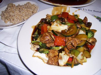 Below is my plate of food– Chick’n and mixed Veg in Tangy Sauce (I also had a side of bok choy).
