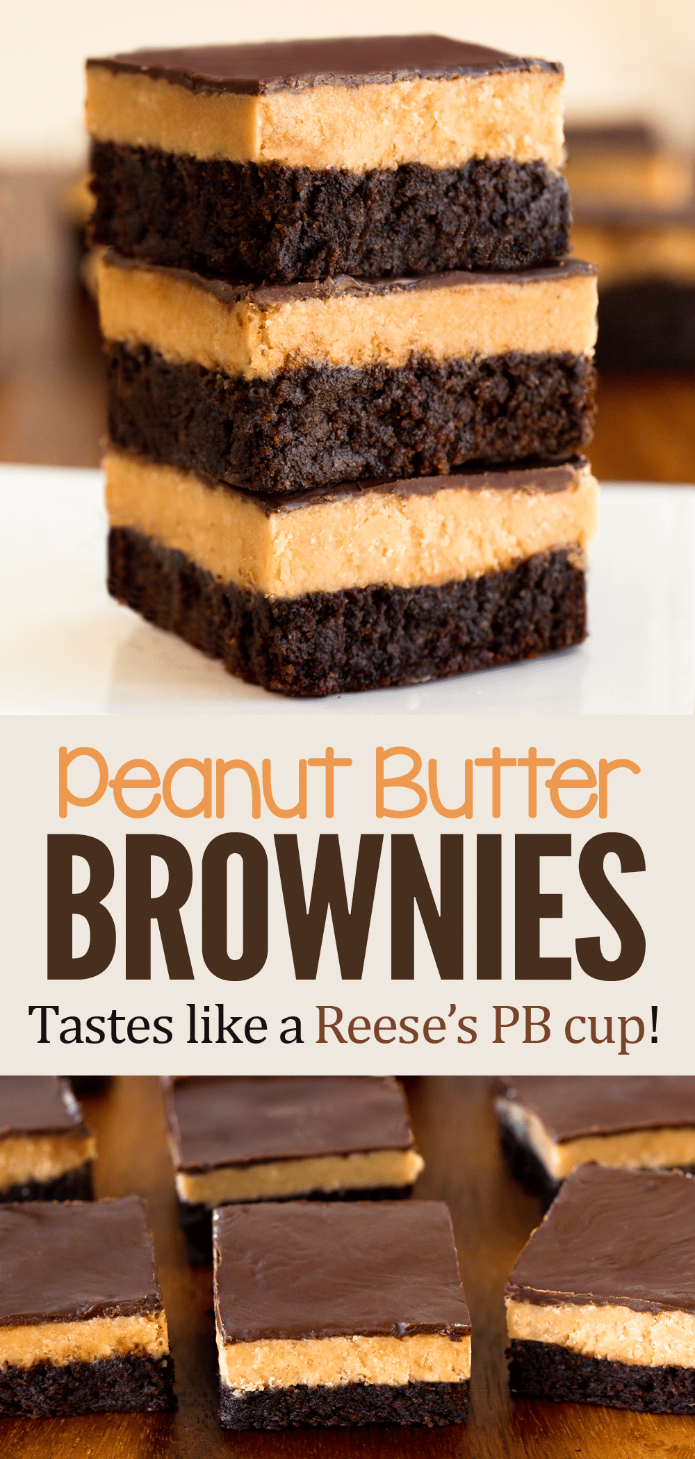 - Bake peanut butter brownies according to recipe directions. Meanwhile, prepare the filling. Make sure butter and peanut butter are soft, then whip all filling ingredients together until completely smooth. (I used a hand mixer for smoother results, but technically you can use a fork if you're very patient.) Spread over brownies. If desired, carefully melt chocolate, stir in oil, smooth over peanut butter layer, and freeze to set. View Nutrition Facts