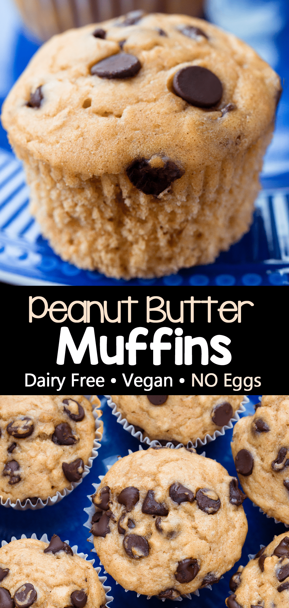 An easy recipe for a batch of wholesome chocolate chip peanut butter muffins that can be completely oil free, dairy free, and vegan!