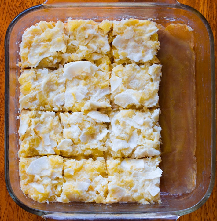 This is honestly a great recipe for a Saturday afternoon, or any time you’re craving a taste of Hawaii, because the pineapple bars can be made with just five pantry staple ingredients that you can always keep on hand.