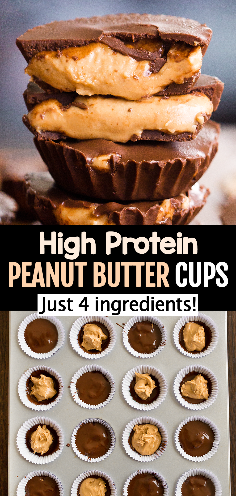 Make your own chocolate high protein peanut butter cups at home. This delicious healthy snack recipe is packed with protein!
