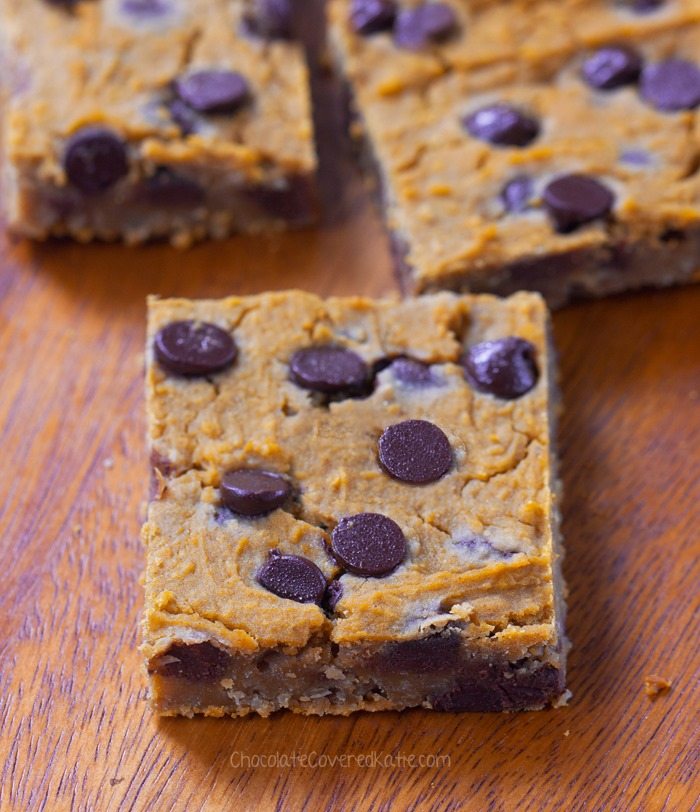 Soft, gooey chocolate chip pumpkin blondies, to fuel your pumpkin obsession!