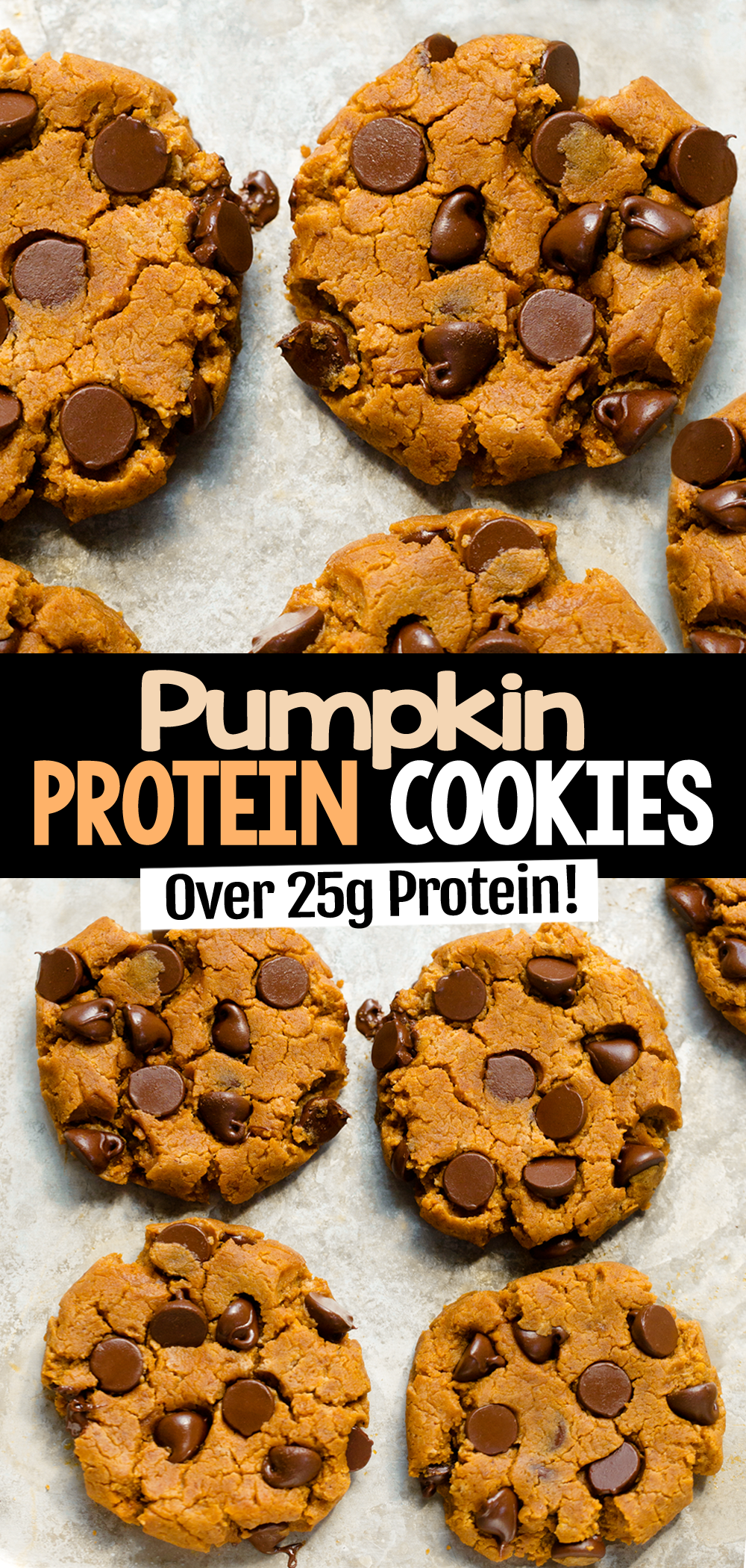 These pumpkin protein cookies are soft, sweet, spicy, chewy, and perfect for dessert or a healthy post workout snack!