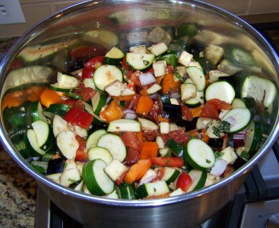 As the following picture shows, I made an enormous batch of ratatouille. When I cook, I like to make extra servings and freeze the leftovers. These particular leftovers lasted quite a while!