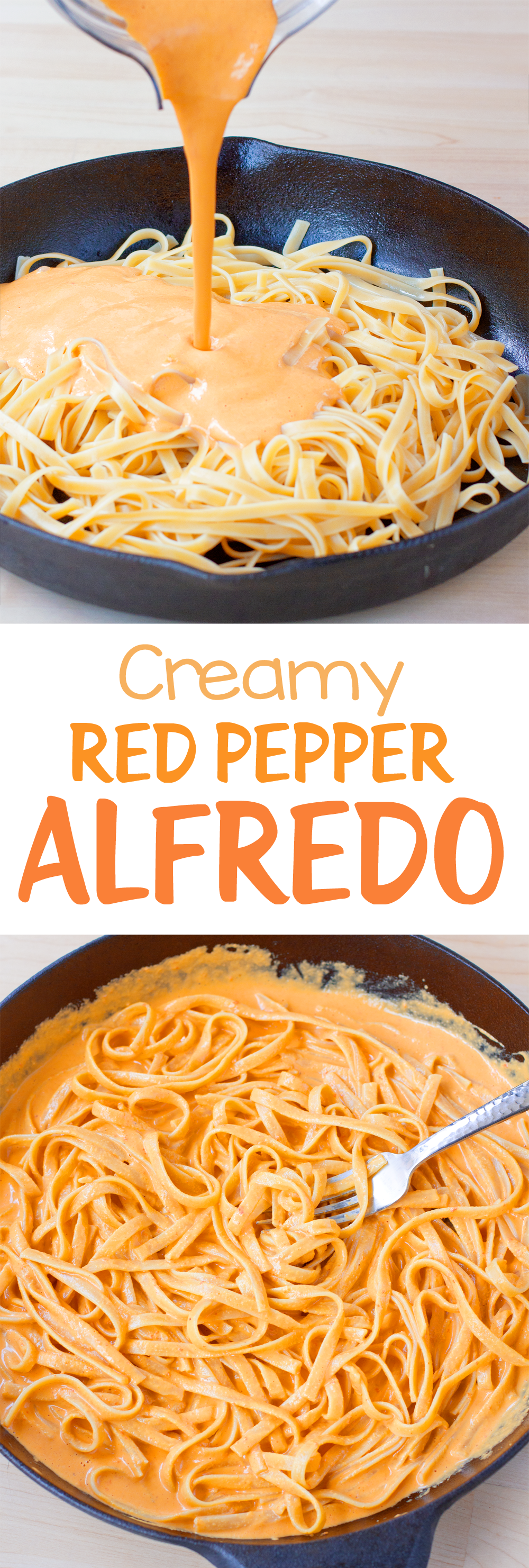 This creamy vegetarian red pepper Alfredo recipe is delicious over pasta or roasted vegetables for a simple healthy dinner.