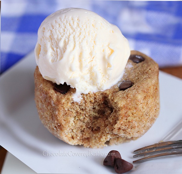 My love of all things chocolate-chip. So this healthy chocolate chip mug cake—made in less than 5 minutes—will always sound good to me!
