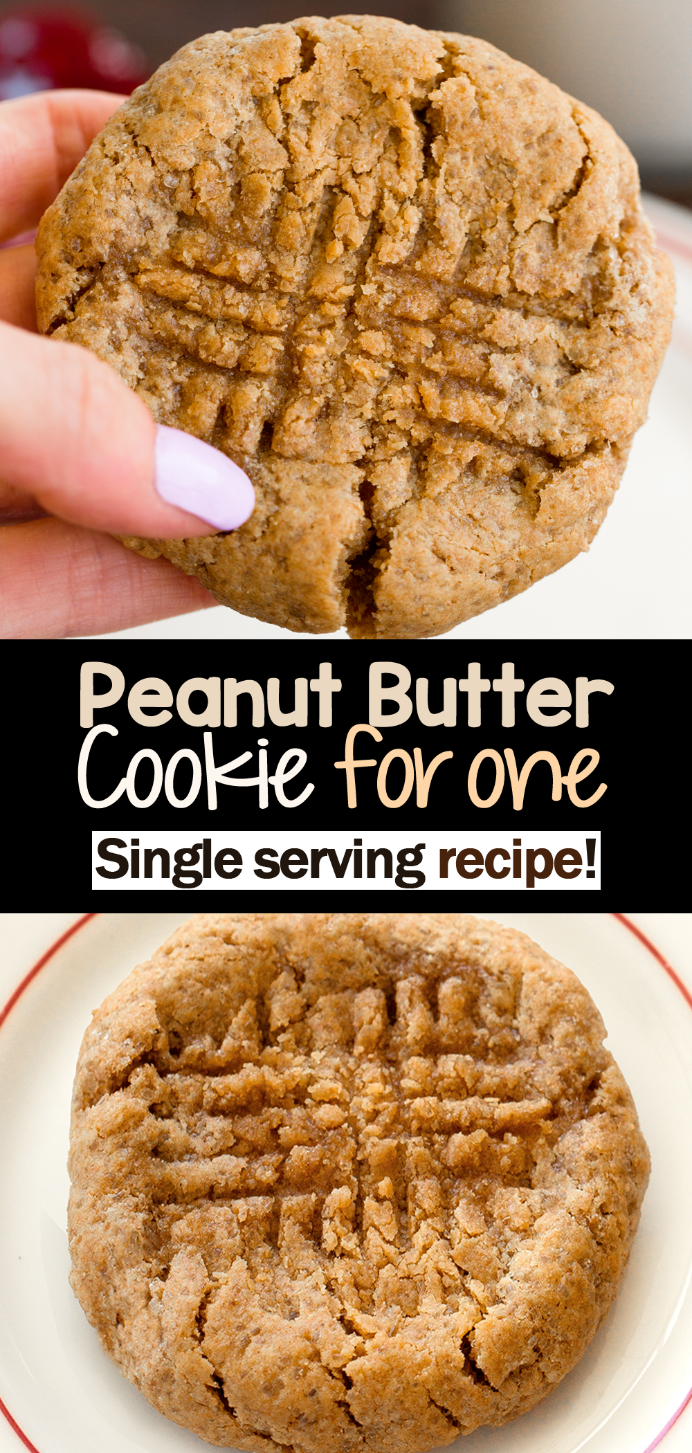What about an easy recipe that makes just one soft homemade peanut butter cookie, doesn’t require any eggs, and can be whipped up in just ten minutes flat?