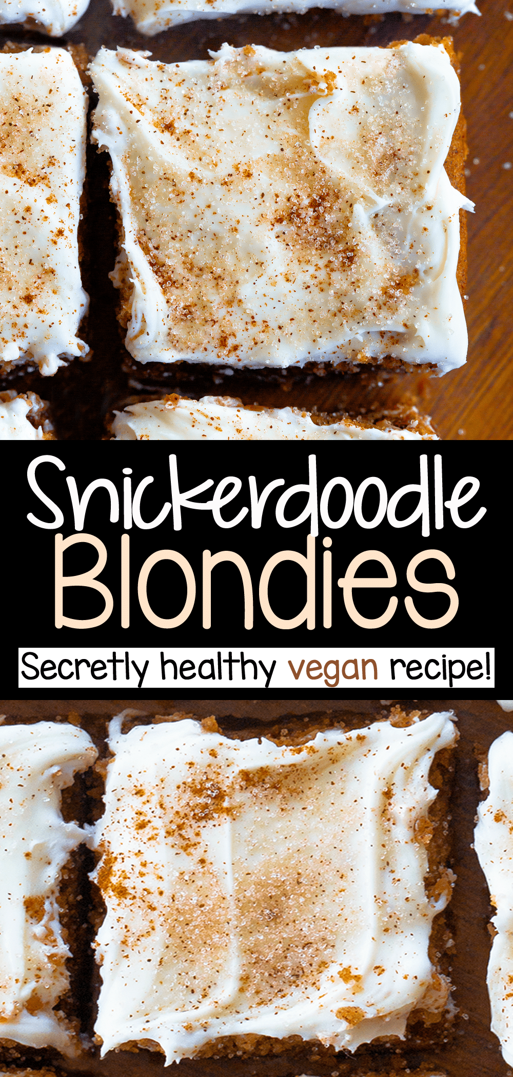 These soft and sweet cinnamon sugar snickerdoodle blondies are so completely delicious, you will never believe the secretly healthy ingredients in the recipe!