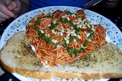 All three kids opted for the spaghetti and soy meatballs (and each kid ate ALL his/her meatballs!), and my aunt ordered (and savored) the pasta primavera. These little cuties also thoroughly enjoyed three thick, creamy soy chocolate milkshakes, topped with a generous squirt of Soyatoo.