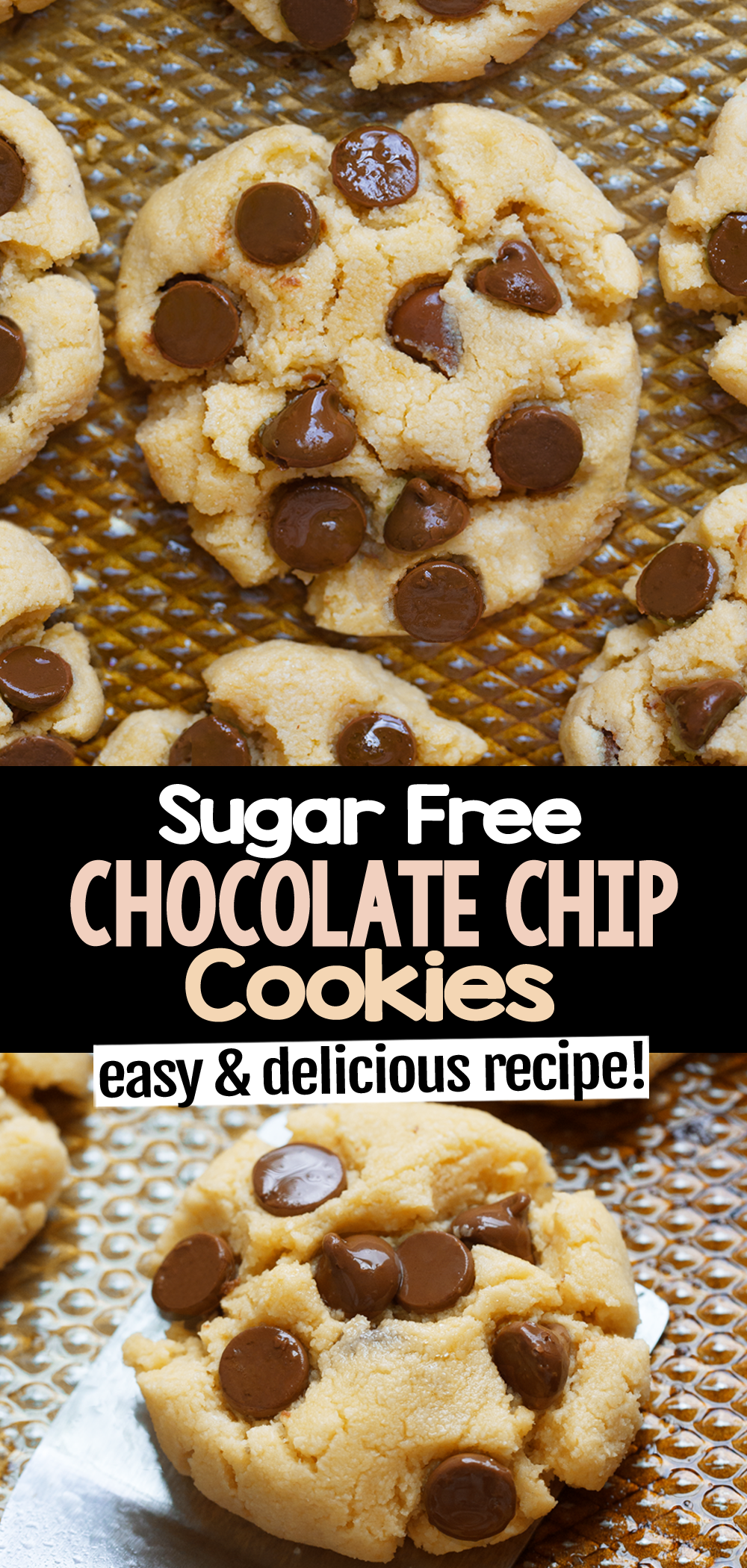 The sugar free recipe was adapted from my Keto Cookies and was inspired by these homemade Vegan Chocolate Chip Cookies.