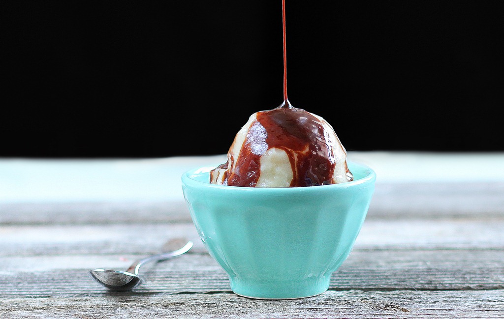 Above, marshmallow ice cream topped with “Healthy” Chocolate Syrup.