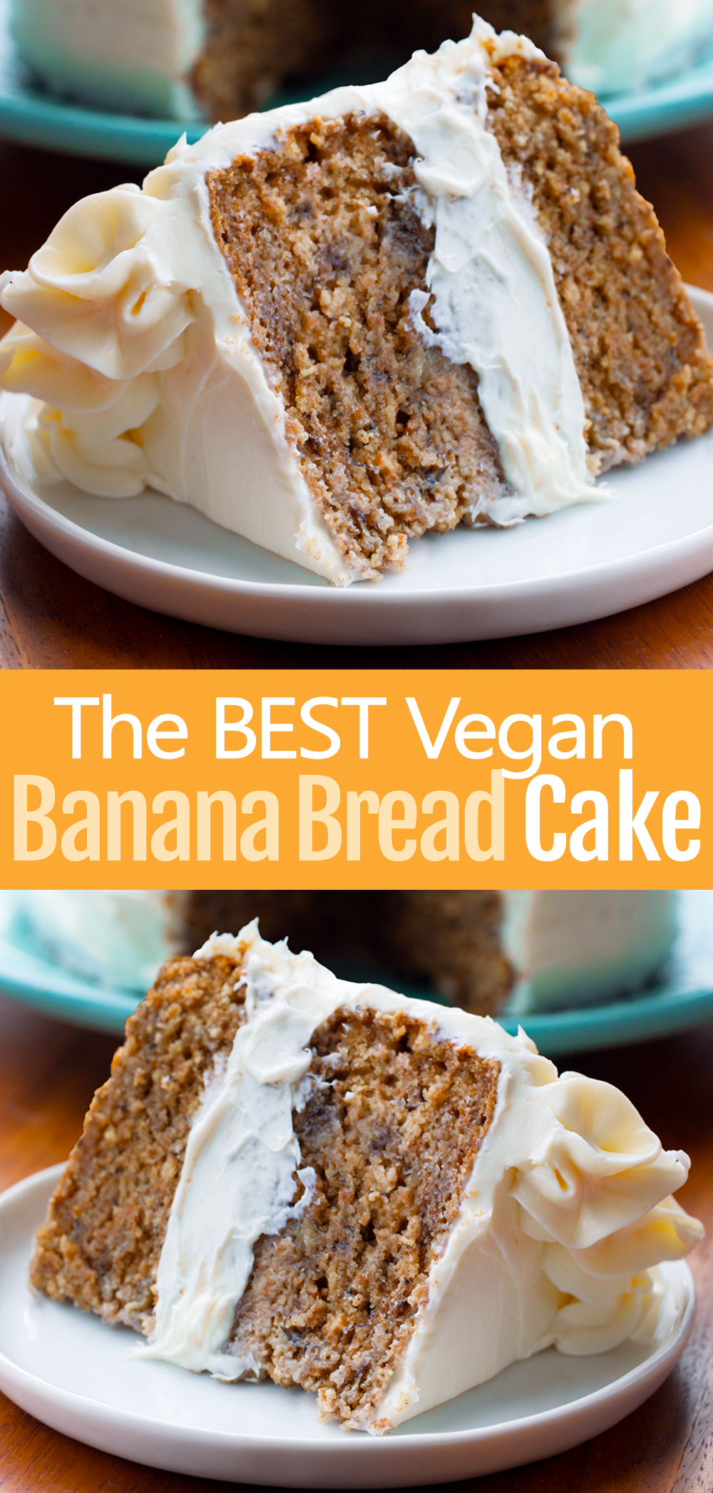 If you like homemade banana bread, you will absolutely fall in love with this soft and moist frosted vegan banana cake recipe!